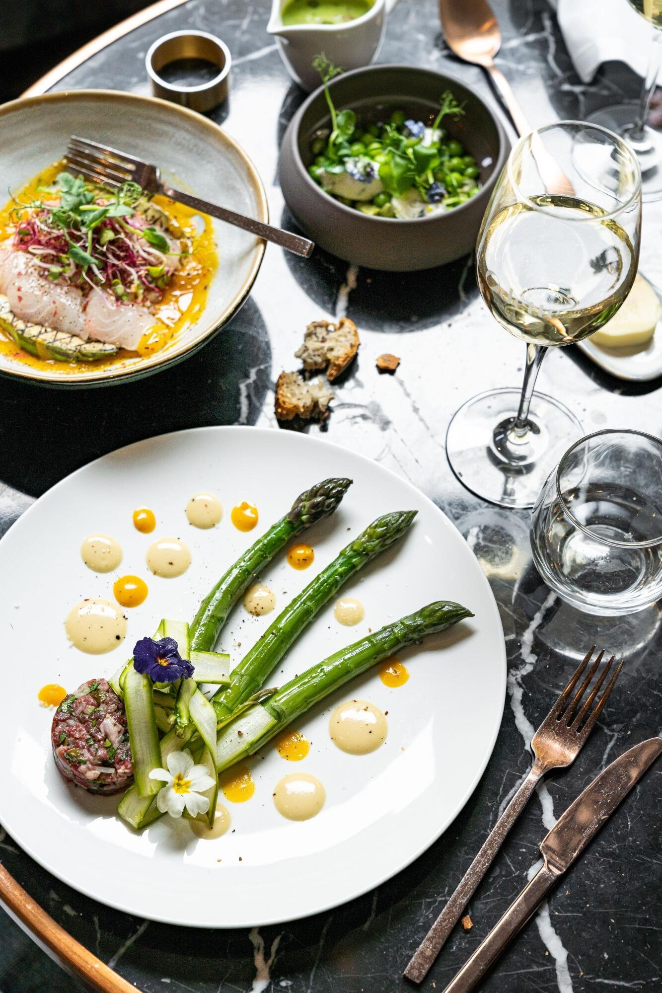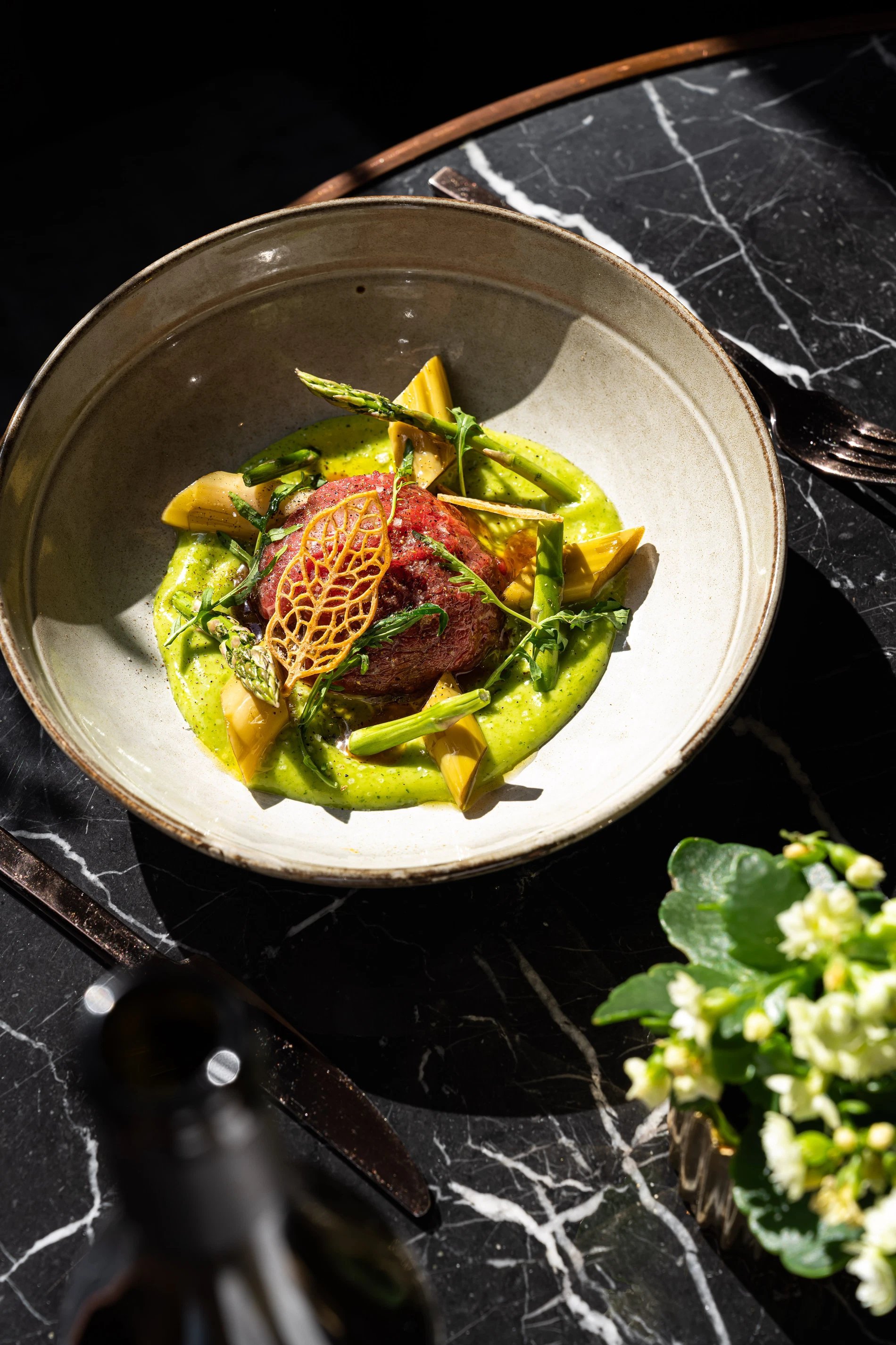 Le Menu Marché à 29 € côtoie des plats signatures à partager, où les garnitures végétales deviennent les véritables stars. Les desserts maison revisitent avec gourmandise les classiques français.