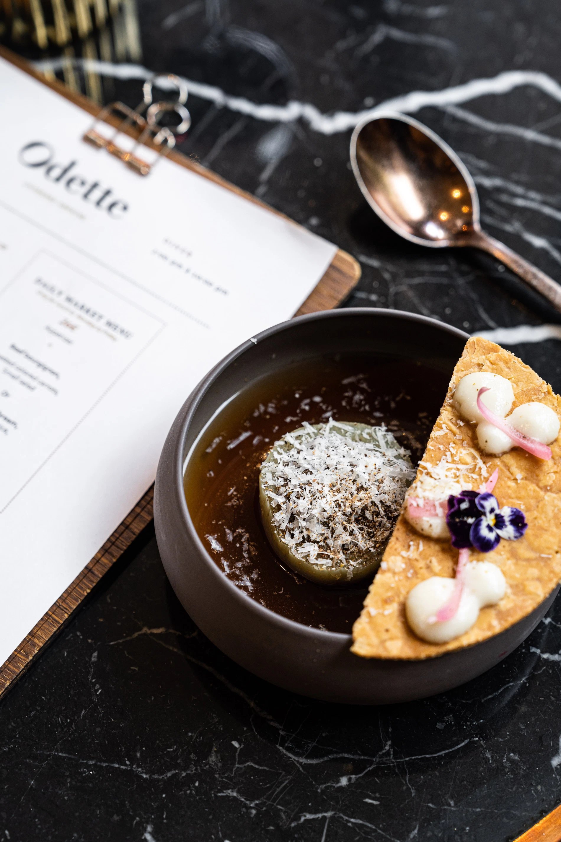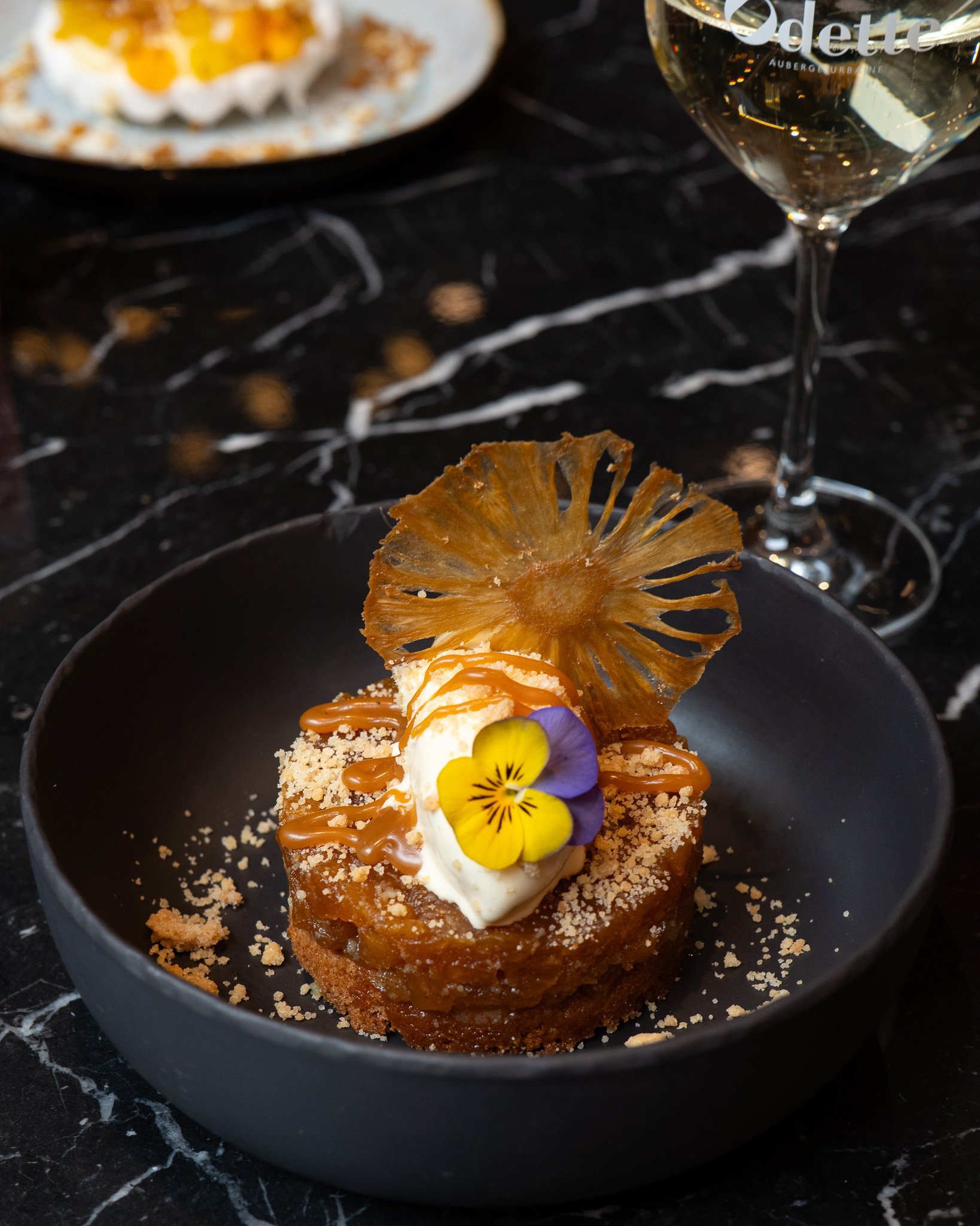Les signatures d'Odette célèbrent la convivialité : bar en croûte doré, belles pièces de viande normande pour deux... Chaque plat devient prétexte à la rencontre, jusqu'aux desserts maison qui revisitent les classiques français. Une table bistronomique où les assiettes rassemblent et les saveurs se partagent.